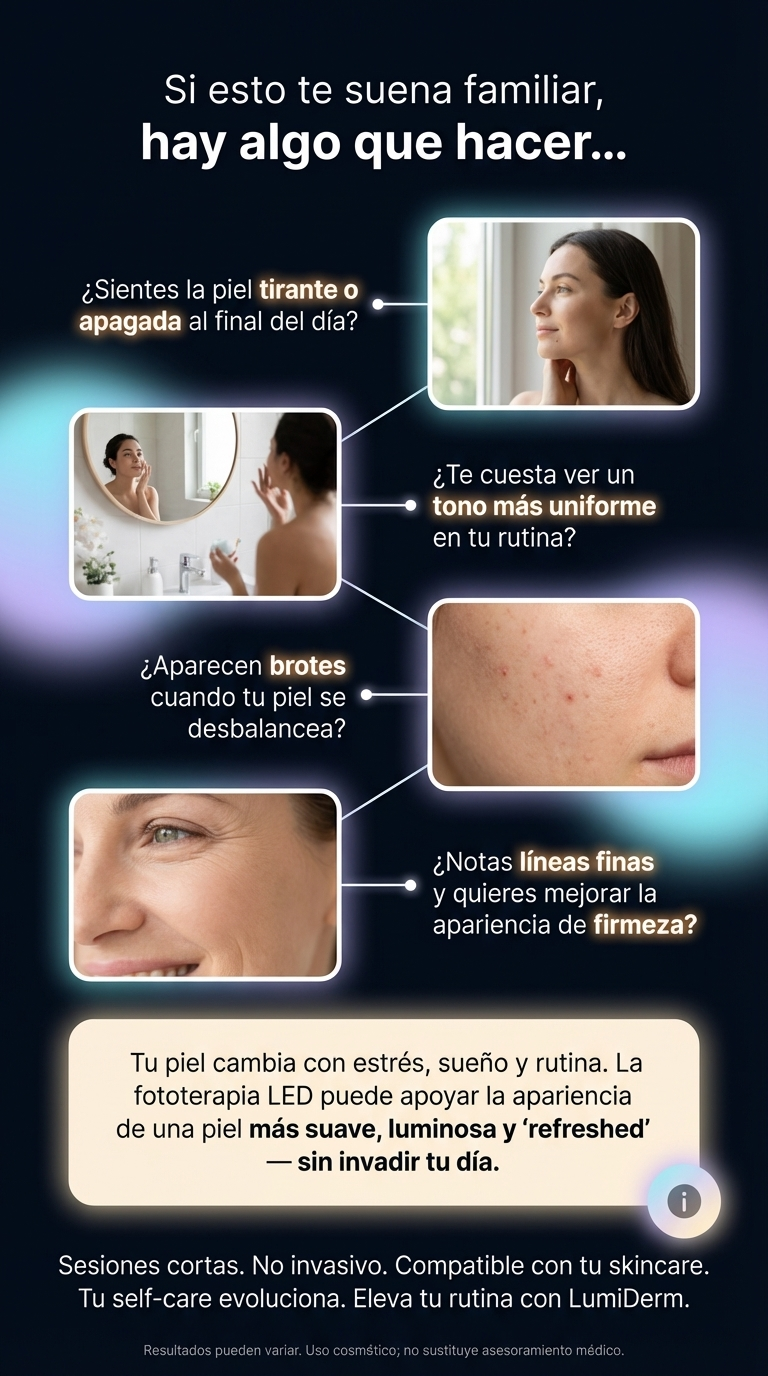 Precisión para elegir el color correcto (grasa, acné, arrugas, pigmentación y luminosidad) sin adivinar.
